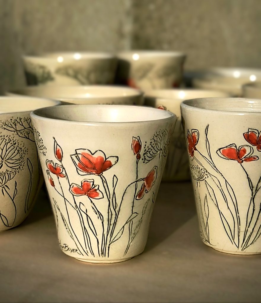 Tournées, modelées et gravées pour être ensuite décorées, la vaisselle réalisée dans ce grès culinaire est très résistante et supporte les utilisations au quotidien, les passages au lave-vaisselle et au chauffe plat.