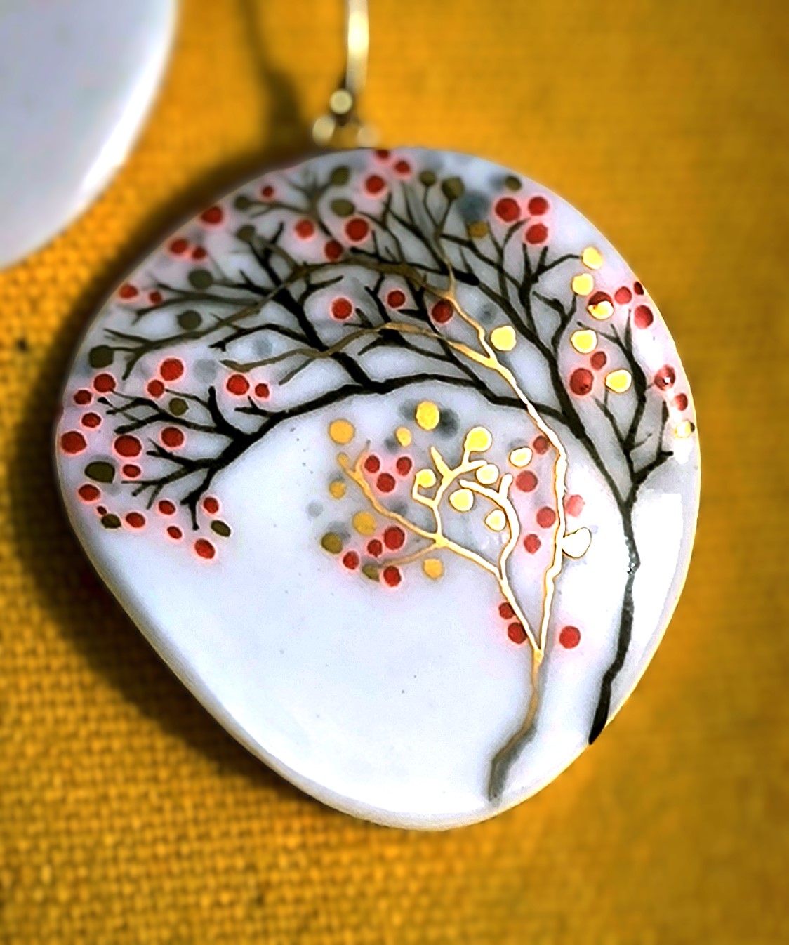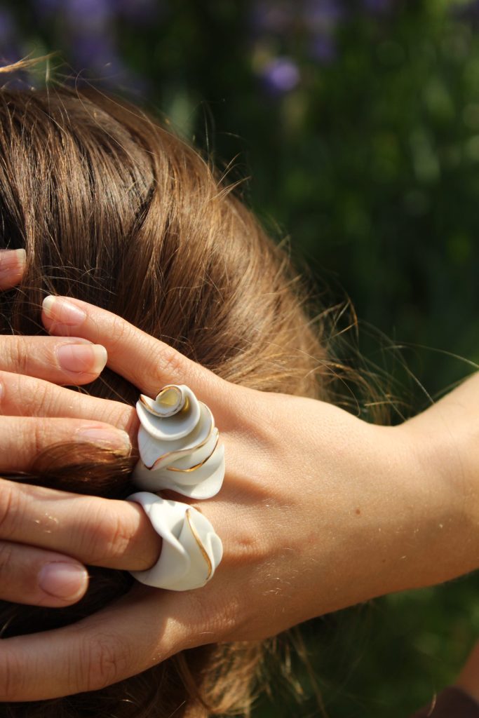 Les bijoux de la collection AniLaure Boyer sont réalisés en porcelaine et en grès, des matières nobles et naturelles, cuites à haute température (1250 °C), puis rehaussés à la feuille d’Or ou à l’émail d’Or.